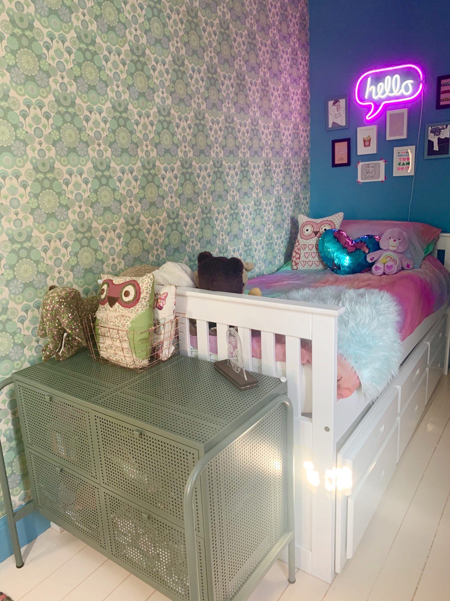 She now has a much more grown up (non vintage) room that suits her personality so much. She spends more time up there and is soon to have friends to stay as the single bed has a pull out bottom bed to it (genius idea!).