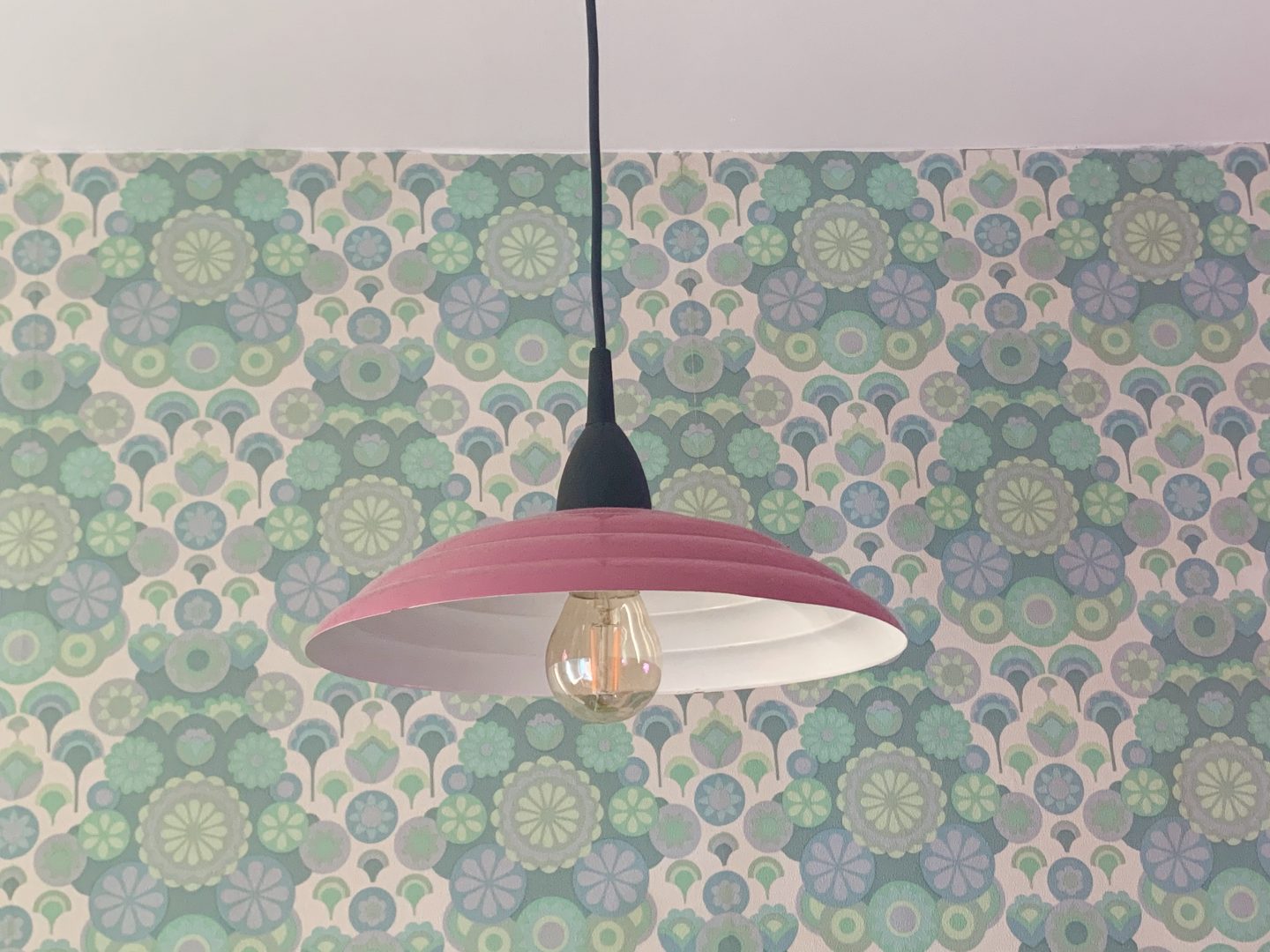 I gave Kitty the choice of adding a bright colour such as yellow or bright pink – she looked at me as if I was mad! She chose pink and this is where we started to have some fun. We added a bright pink vintage style lamp and light shade very similar to ones I had in the 1980s.
