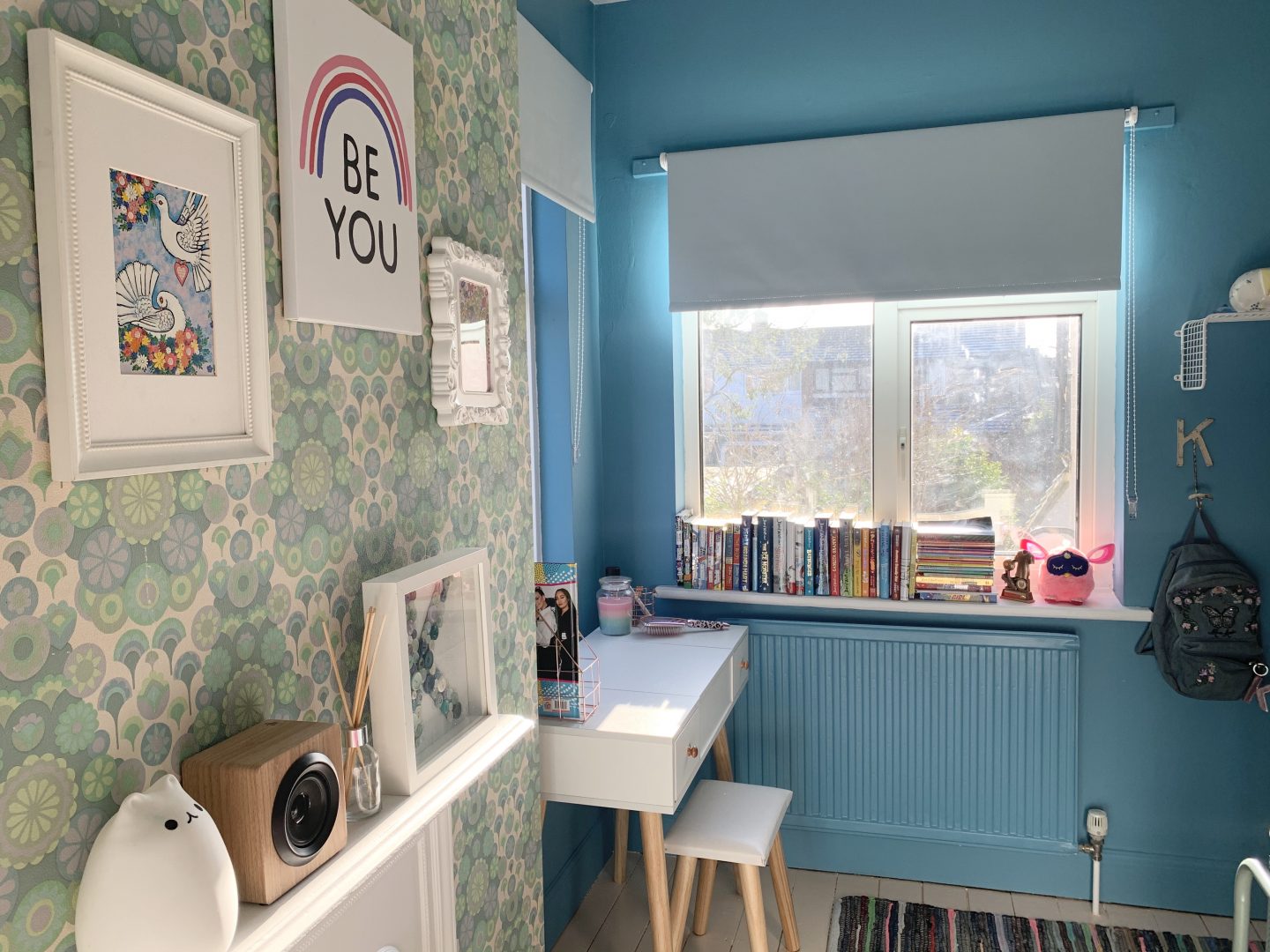We also pulled out the duck egg colour in the wallpaper for a few accessories such as the blinds and the fluffy rug. As much as it looked nice – it all felt a bit matchy matchy.