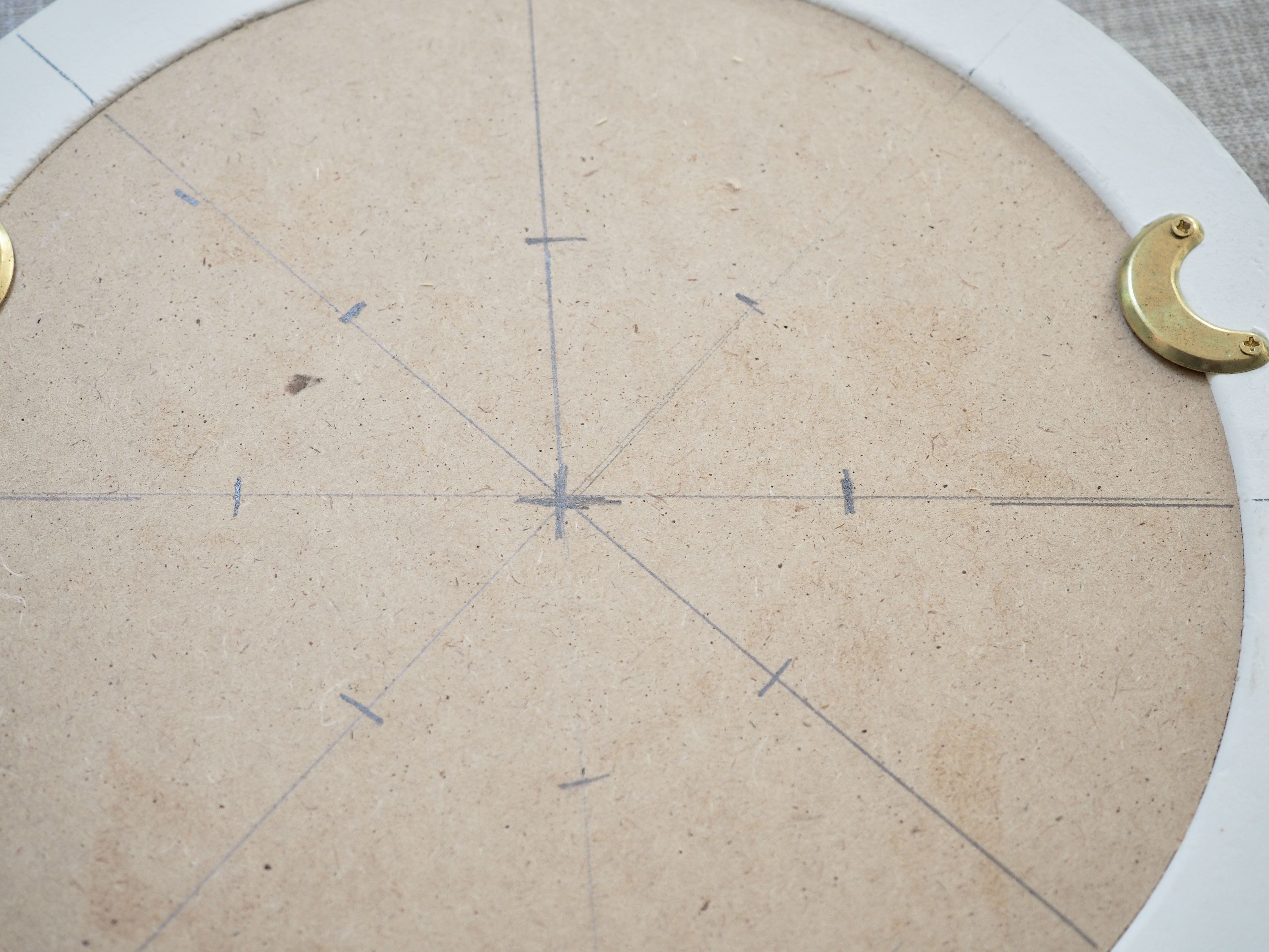 Step 2: Turn the mirror over and using the pencil and ruler, pin point the central point of the mirror and draw a line from side to side and top to bottom. Using the ruler mark the back into eight sections.