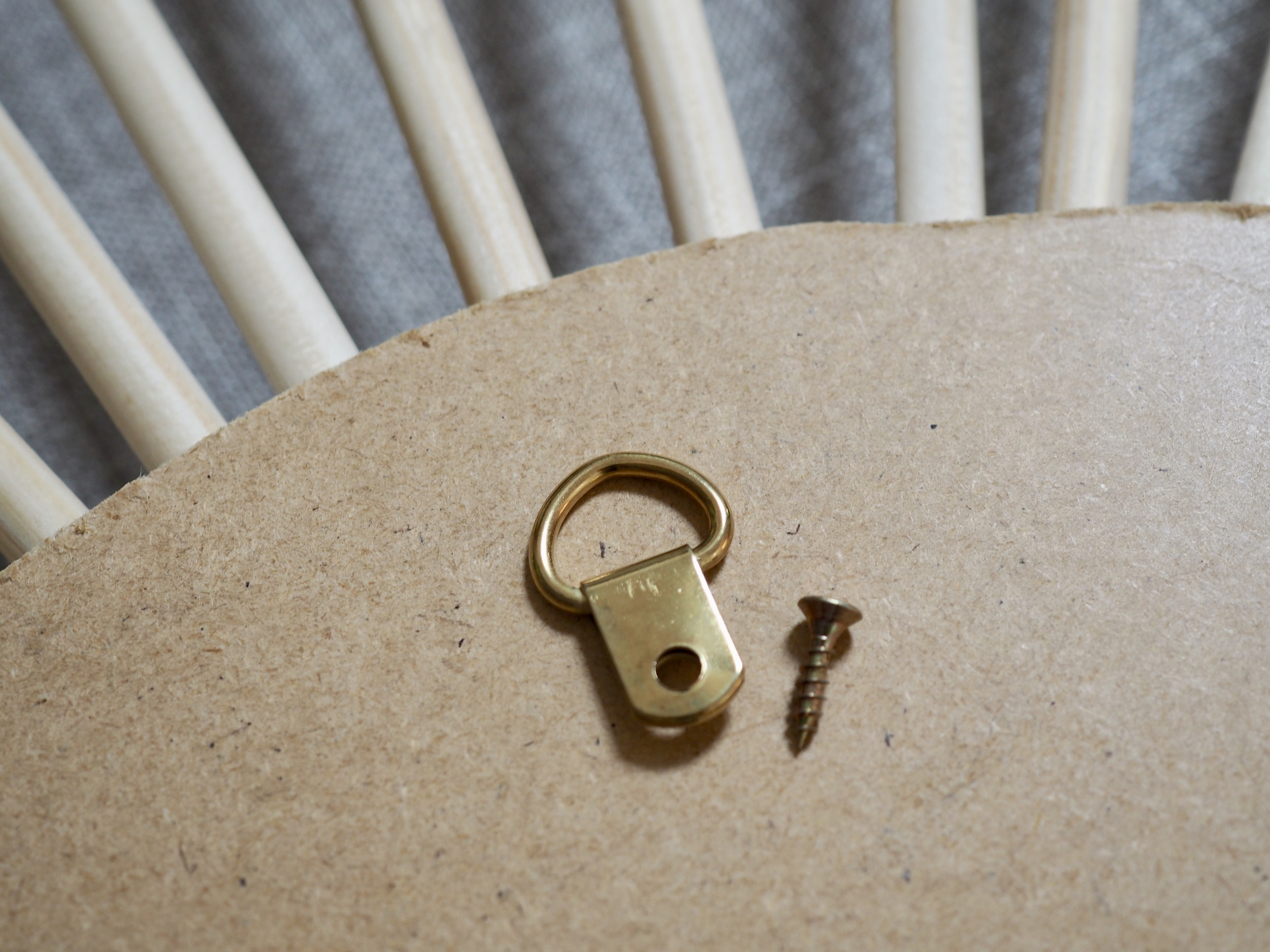 Step 8: When dry, screw a ring fixing to the back, making sure you position it so the mirror will hang with a long spike facing upwards.