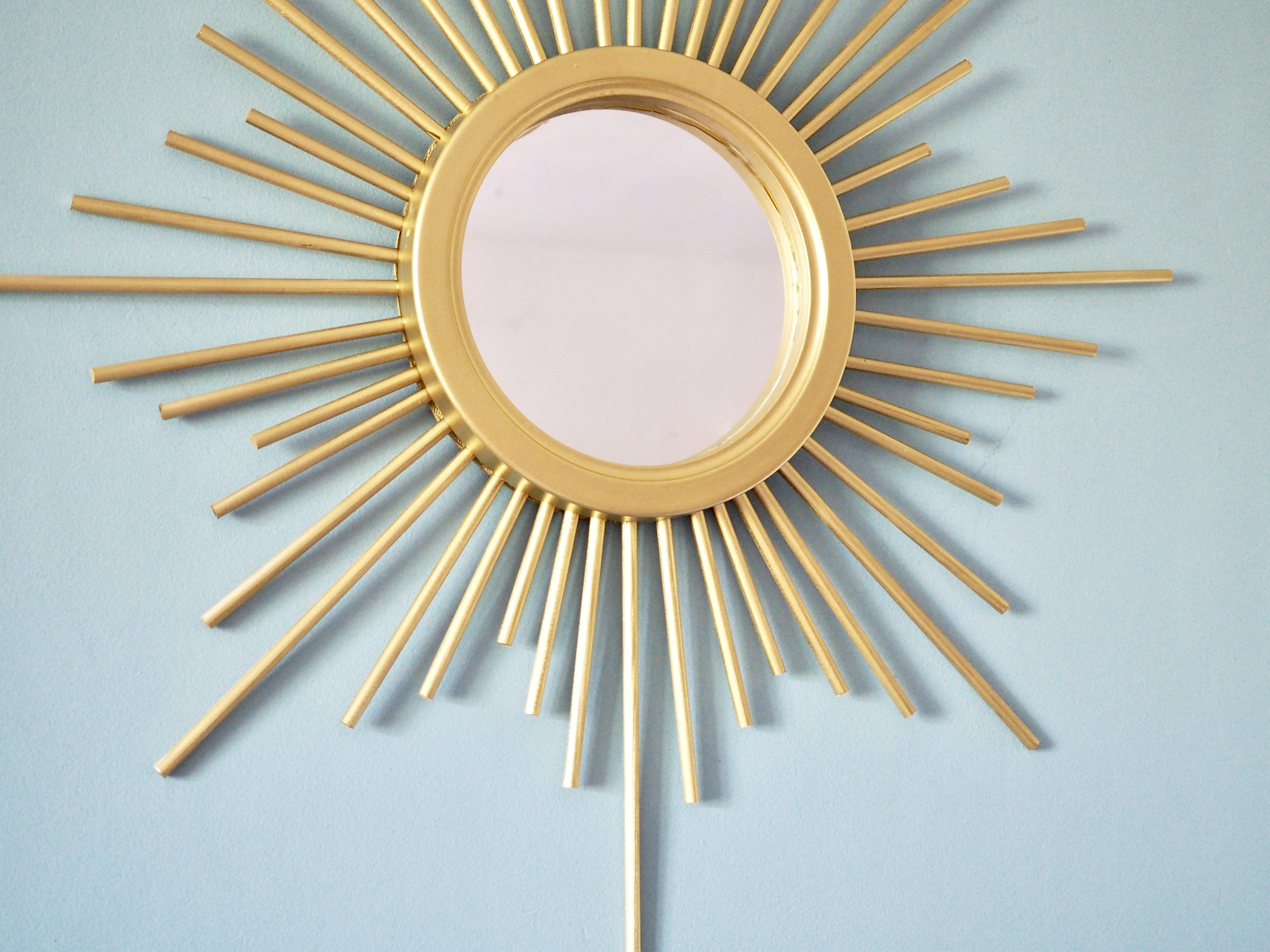 The gold starburst mirror was designed as early as the 1920s, but it wasn’t until the late 1960s that they became popular. Today a vintage one can be pretty pricey, and even a reproduction one can set you back so why not create your own? They are perfect to add any glamour to any bedroom but of course would work well in a lounge or hallway too!
