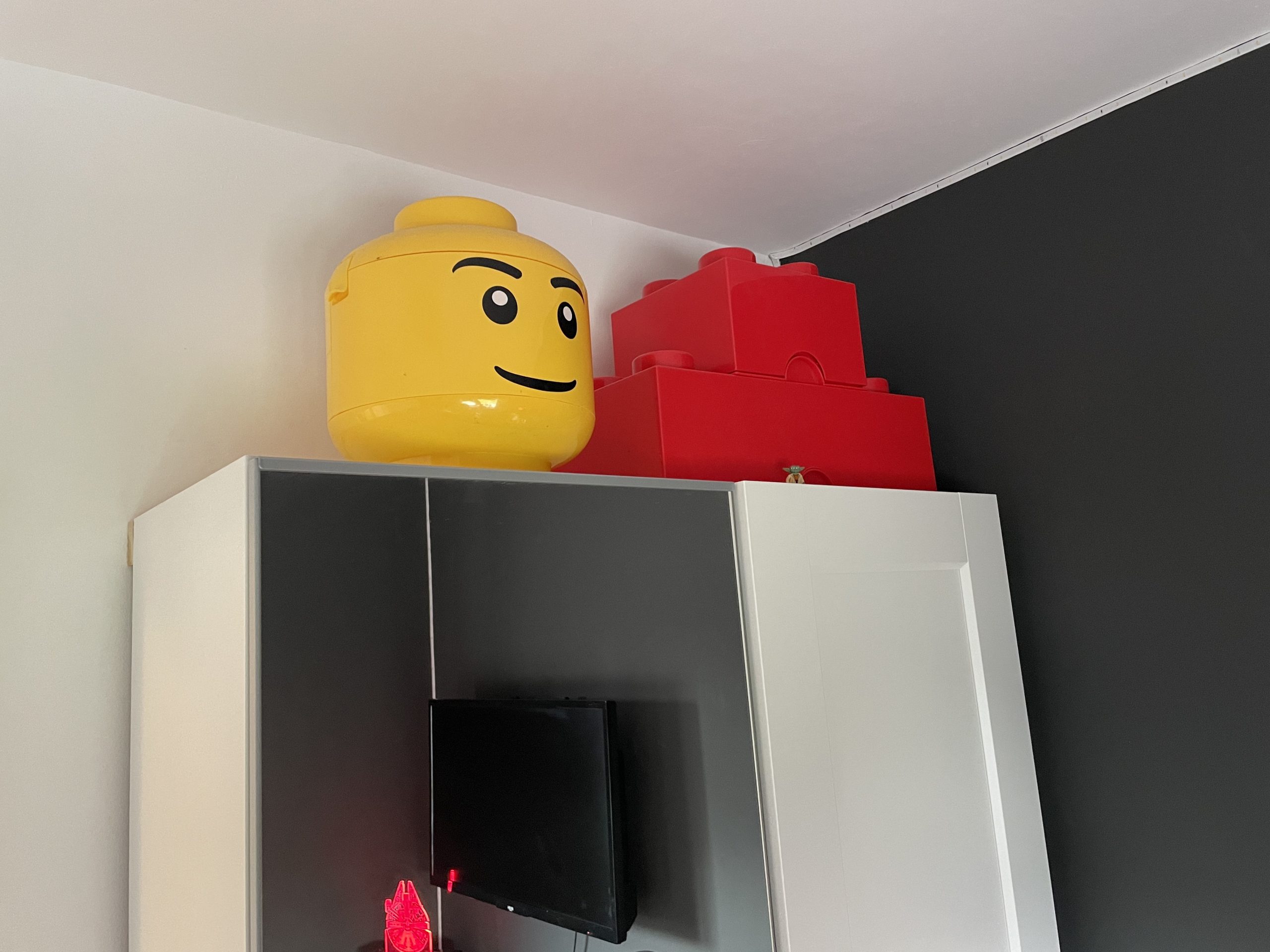 However everything else is modern. The bed, wardrobe and red unit all come from IKEA. The bed is great as has four large drawers and 2 shelves underneath plus storage space under the mattress.
