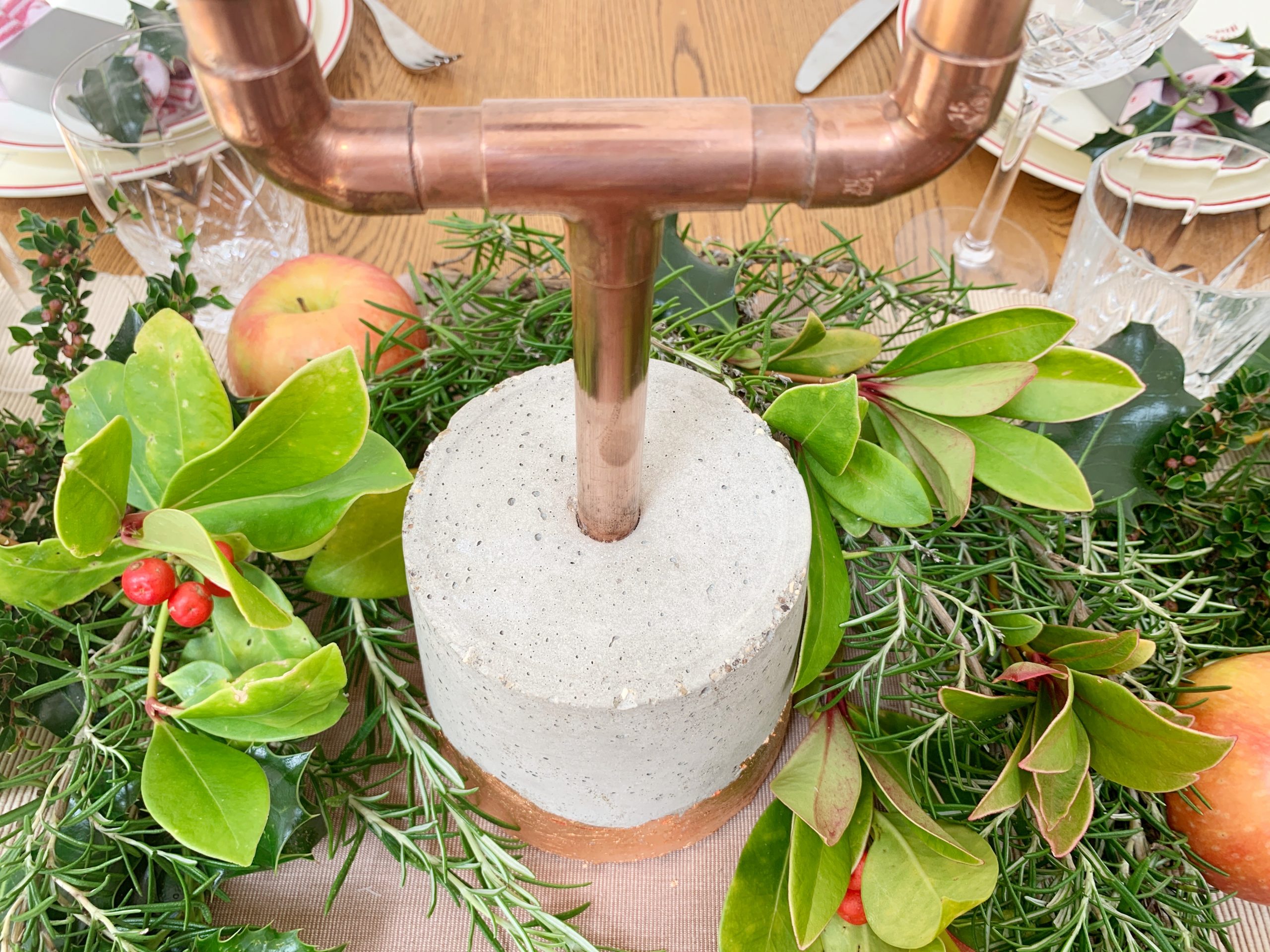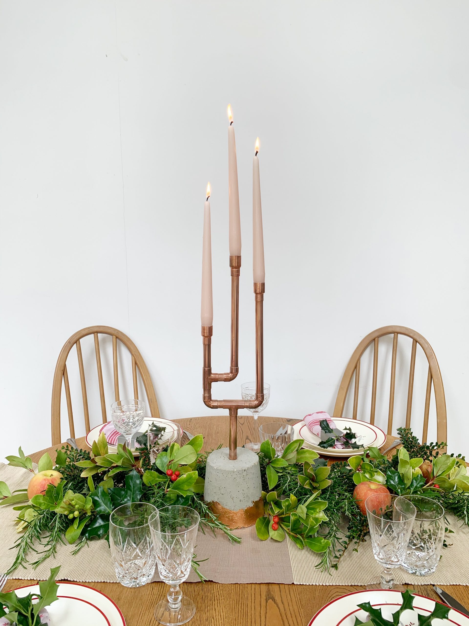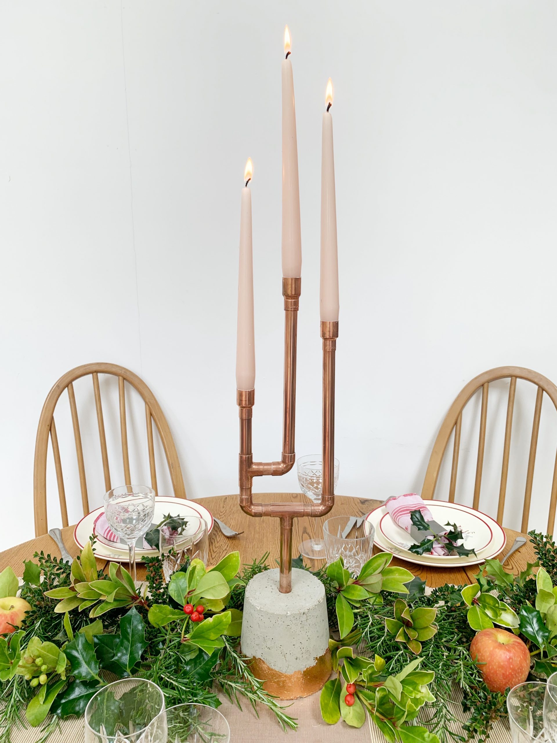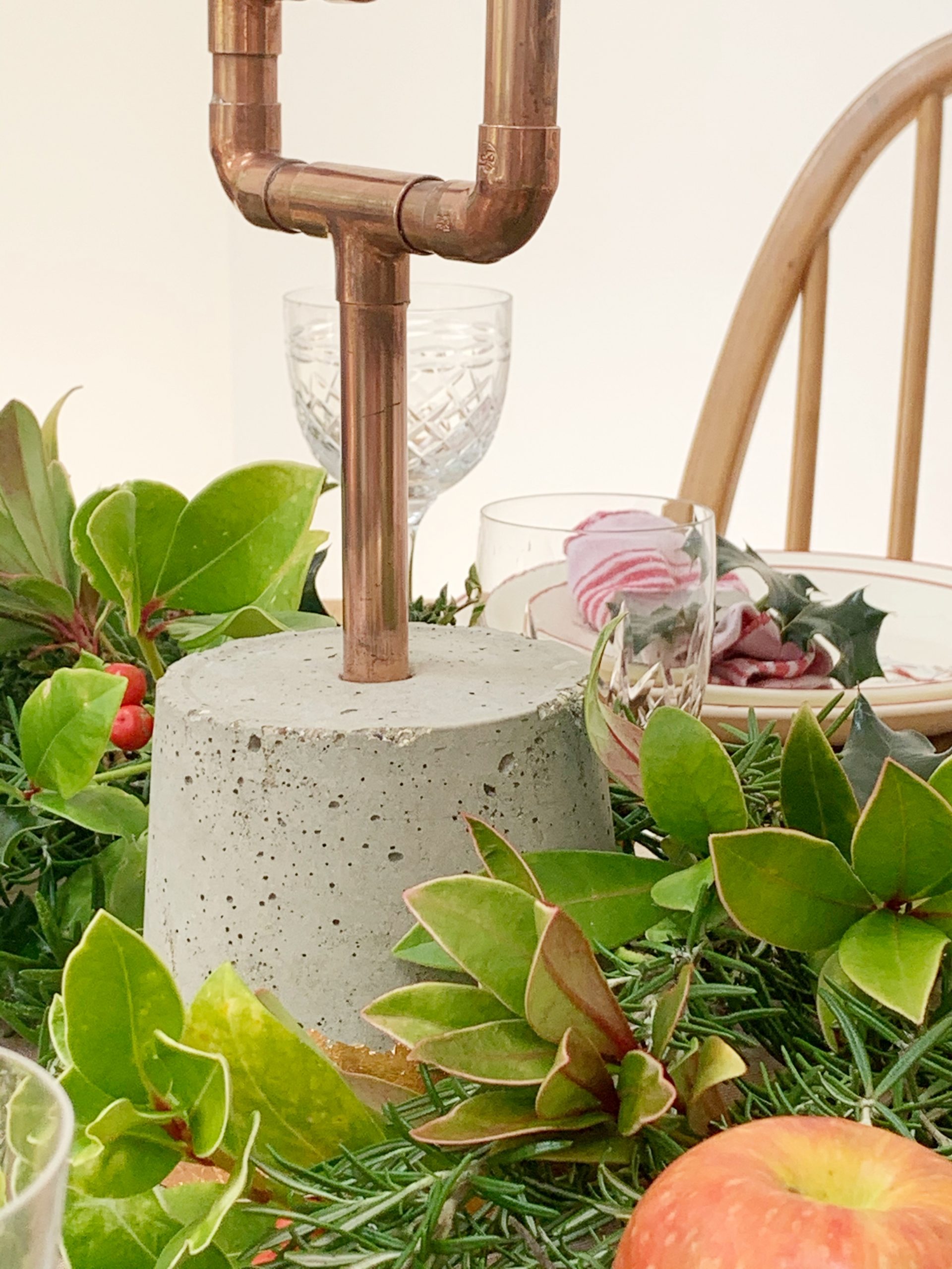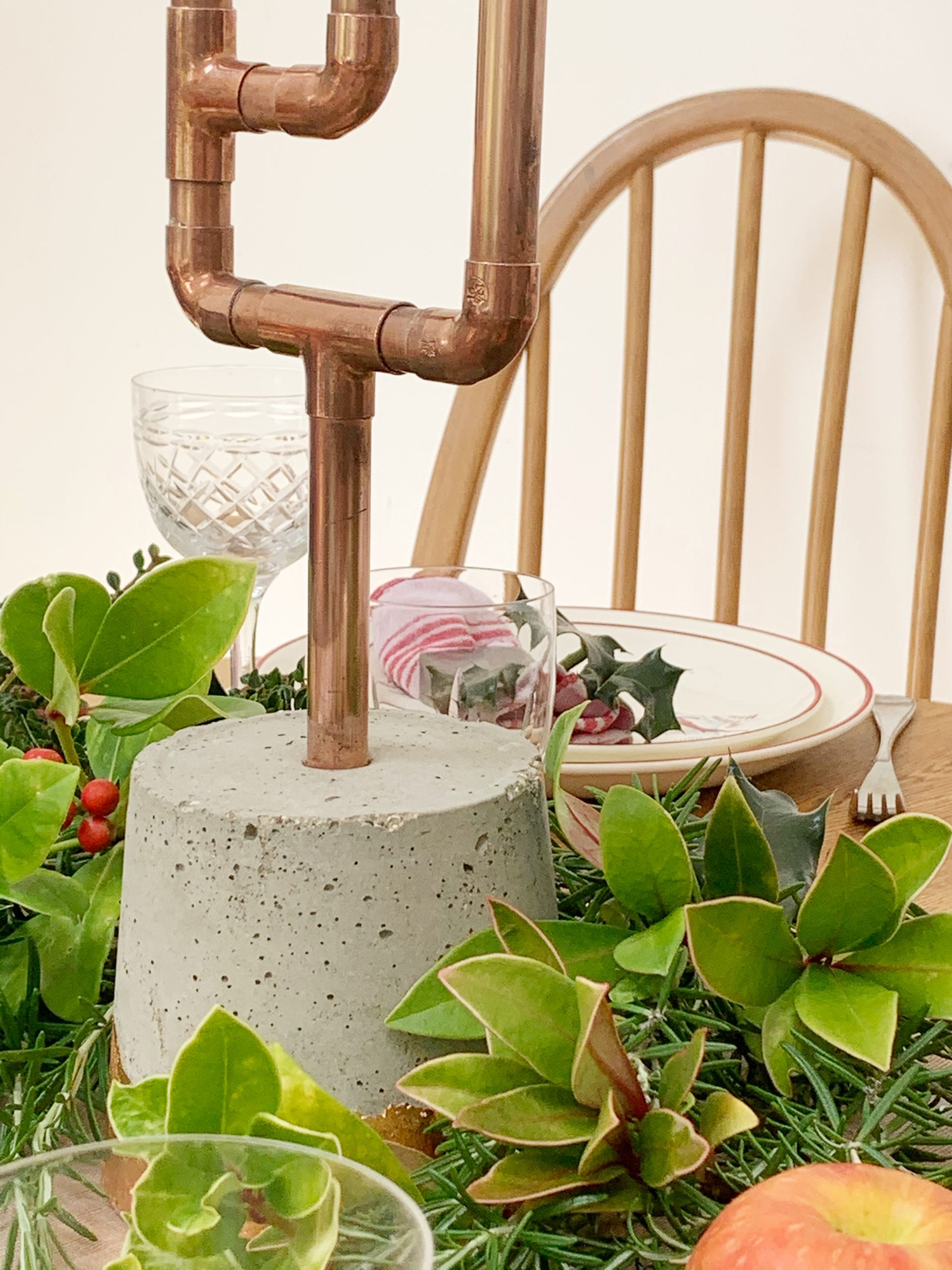 Copper piping and cement are usually found on the building site but with this clever make will look amazing in your home for a modern urban look. I recently made this copper pipe candle holder for our Christmas table but of course it will look lovely all year round!